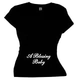 Flirty Diva Tees Woman's SoftStyle T-Shirt-A Blessing Baby-Black-White (Apparel) newly tagged "womens clothing"