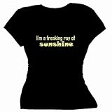 Flirty Diva Tees Woman's SoftStyle T-Shirt-I'm a Freaking Ray of Sunshine-Black-Yellow (Apparel)