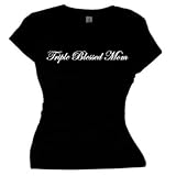 Flirty Diva Tees Woman's SoftStyle T-Shirt-Triple Blessed Mom-Black-White (Apparel)
