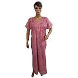 Evening Dress Womens Ethnic Pink Floral Printed Cotton Caftan Kaftan Resort Wear Medium (Apparel)